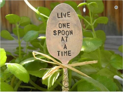 8) Nie pamiętasz dokładnie, co rośnie w jakim miejscu? Wykorzystaj stare łyżki, które ozdobisz ładnym napisem i na przykład dekoracyjną wstążeczką.